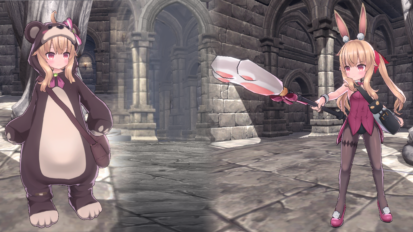 Little Witch Nobeta skin bundle include the Bunny suit with adorable rabbit ear and tail & your family friendly bear muppet suit. Put Nobeta in these unique outfits for a special adventure!