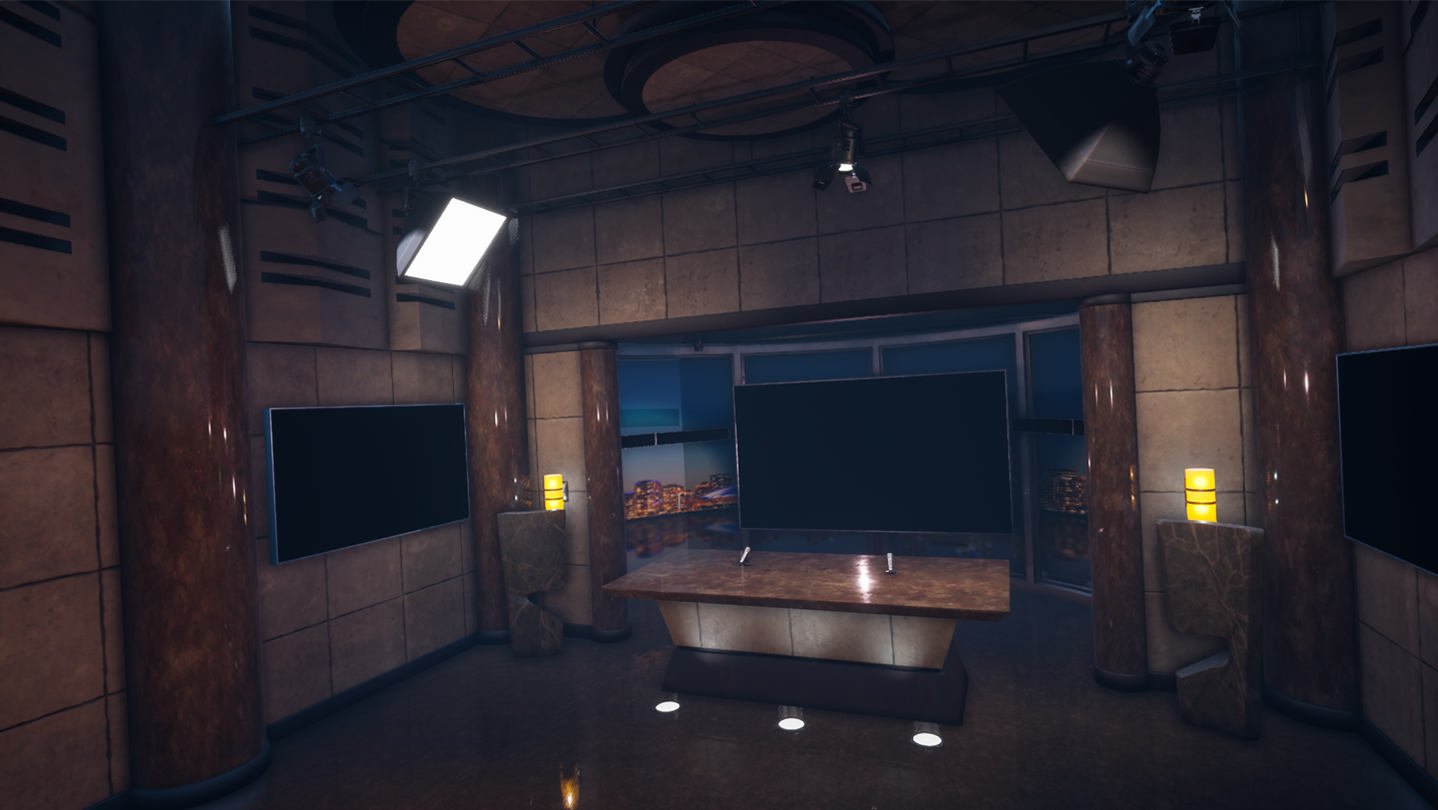 Your one stop home broadcast studio! Look like a pro in a million dollar studio with nothing more than an HD webcam, greenscreen, and your streaming software of choice. Import your videos, images, and logos into your studio, and customize every aspect of the studio to match your brand aesthetic!
