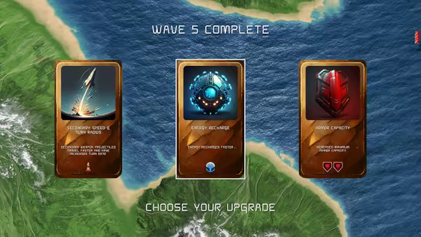 Manage your energy levels to make best use of your skills. A dash at just the right time can save your ship, or destroy masses of enemies ... if you have the right upgrades.