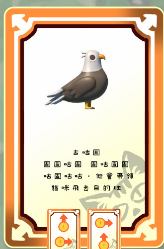 🐈卡牌閱讀方法為由上到下,以這張為例,貓咪會先向上走2格,再向右走2格,最後向下走一格