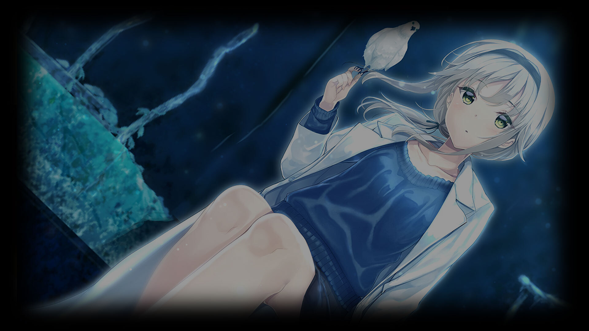 There, Sora met a silver-haired maiden. She looked straight at Sora, gently stroking an artificial pigeon with her finger.
