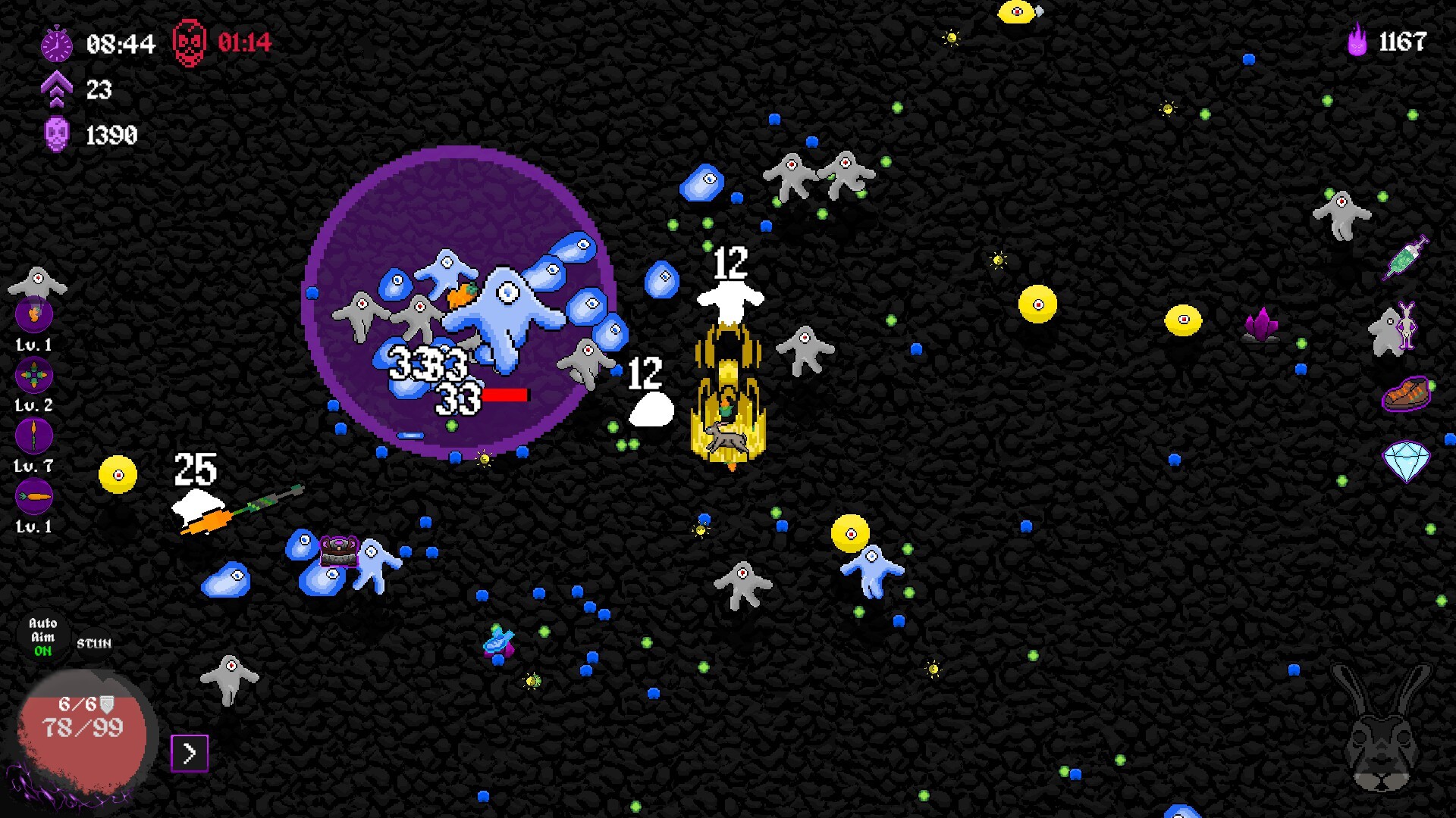 You can equip up to 4 weapons at the same time, targeted weapons, random positioned weapons, melee weapons, try them out and find the perfect combo!