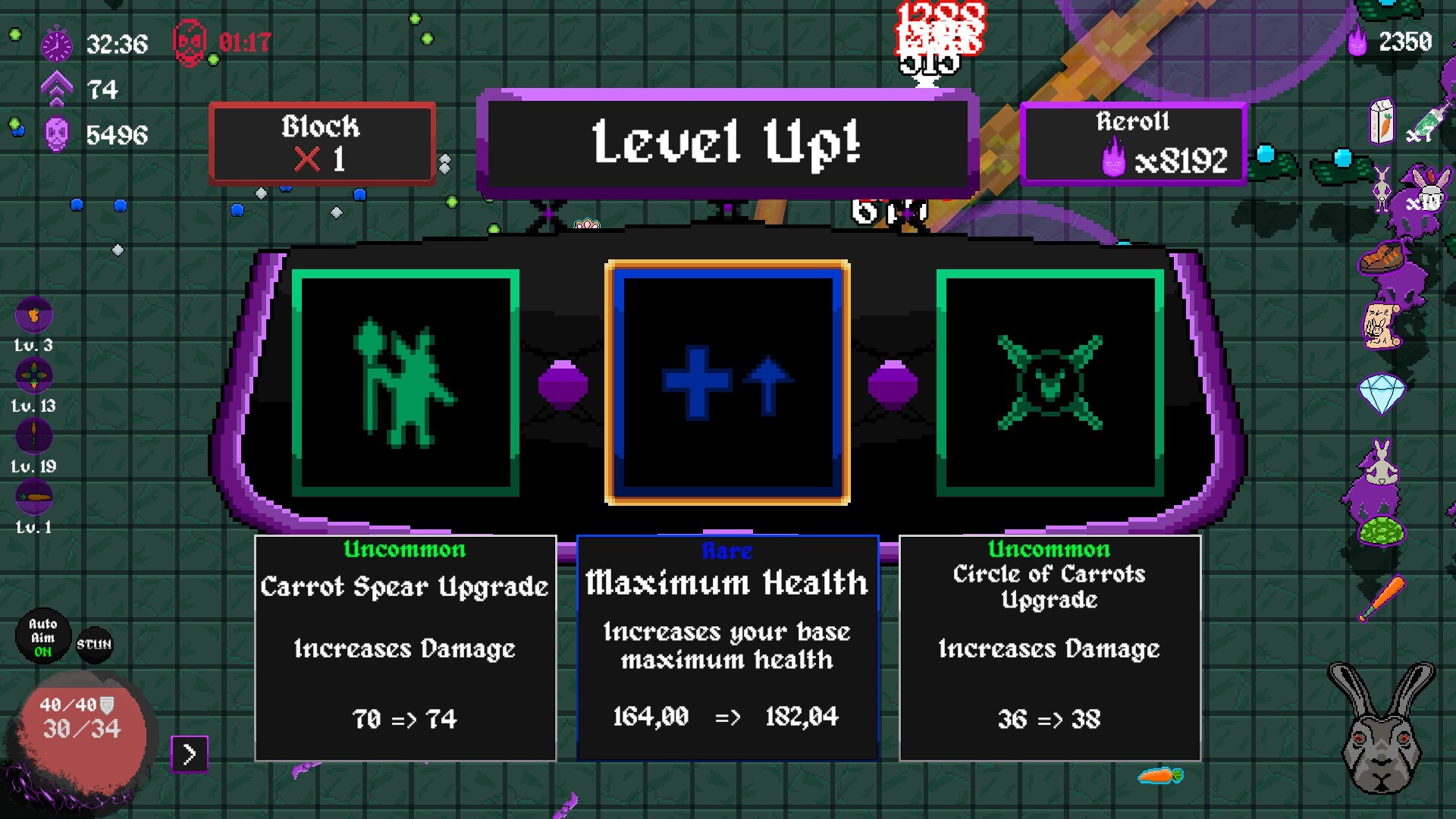 You can equip up to 4 weapons at the same time, targeted weapons, random positioned weapons, melee weapons, try them out and find the perfect combo!