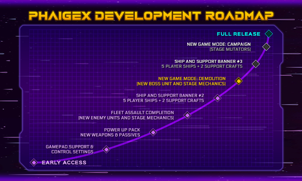 PhaigeX is a fast-paced "survivor-style" space shooter that tasks the player to contain a growing incursion of rogue AI-controlled units. Pilot a variety of ships, warp in the support craft, and use a myriad of upgrades to lay down heavy firepower against the growing menace.