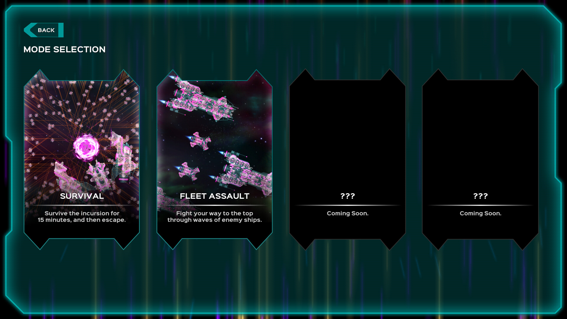 “Right now, the game has 5 playable ships, 2 support crafts, 14 weapons, 18 passives and 2 game modes (Survival and Fleet Assault).”