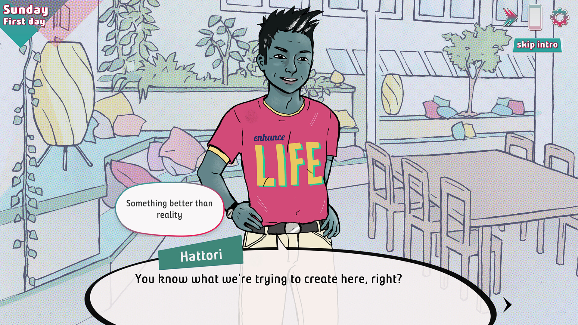 In Truer than You, you play as 26-year old non-binary Rin who’s recently moved to a big city to start their new life and a new position at the secretive company Truer than You, specializing in renting out actors for real life situations.
