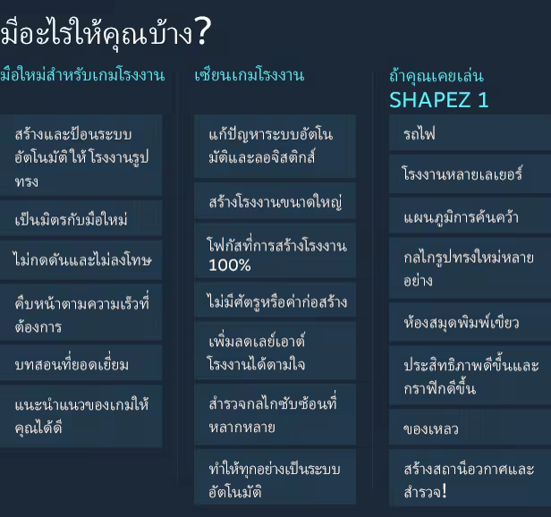 หากคุณกำลังมองหาจุดเด่นที่ shapez 2 มีให้ นี่คือฟีเจอร์ที่คุณไม่ควรพลาด: