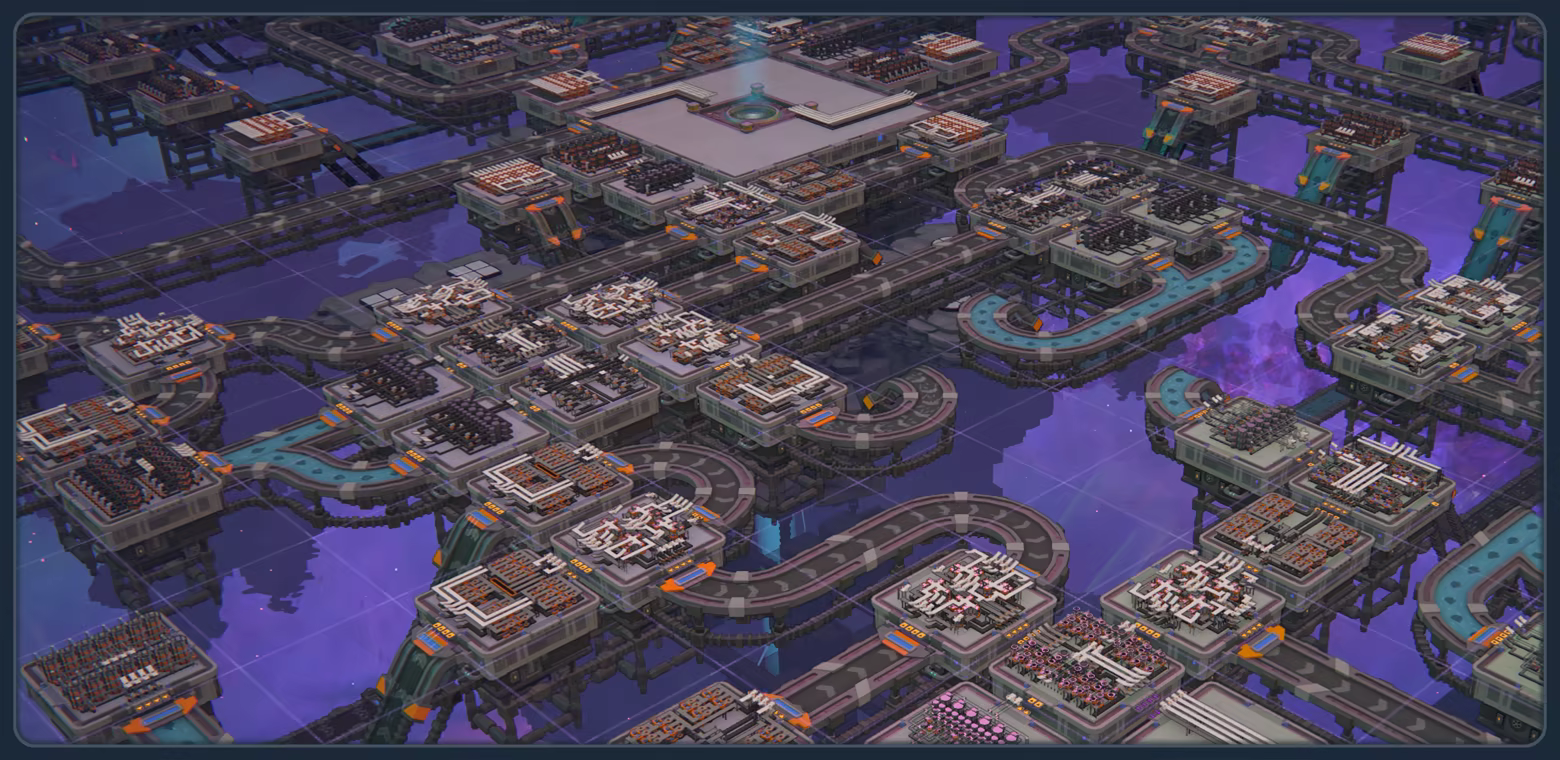 จัดส่งรูปทรงที่กำหนดเพื่อปลดล็อกเทคโนโลยีใหม่ๆ เพื่อขยายขีดความสามารถและขนาดของโรงงานให้รองรับการสร้างสรรค์รูปทรงที่แปลกใหม่และซับซ้อนยิ่งขึ้น เปลี่ยนจากสายพานลำเลียงเส้นเดียว ให้กลายเป็นโรงงานอวกาศขนาดมหึมาที่เชื่อมต่อกันถึง 3 ชั้น เลือกระหว่างเน้นความสมบูรณ์แบบเพื่อเพิ่มประสิทธิภาพในทุกพื้นที่ หรือจะแผ่ขยายโรงงานสู่ความเวิ้งว้างของอวกาศด้วยการเชื่อมต่อสิ่งก่อสร้างนับล้านด้วยรถไฟอวกาศ คุณคือผู้กำหนดทิศทางในการวิศวกรรมโรงงานของคุณเอง