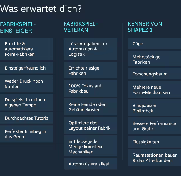 „Der Erfolg des ersten Shapez-Titels war zum großen Teil dem Feedback und der Unterstützung unserer Fans zu verdanken, und bei Shapez 2 möchten wir diese Vorgehensweise beibehalten. Wir werden die Community so gut wie möglich in den Entwicklungsprozess miteinbeziehen, um ein Spiel zu erschaffen, das unsere Spieler genauso lieben wie wir.“