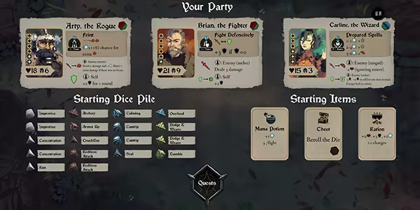 Gather the party of heroes with different characteristics. Equip them and send on adventures. Roll dice to fight. Use abilities to change the result of the battle at will. Get a collection of dice, classes, and items and go further and further into more dangerous areas of this world every time.
