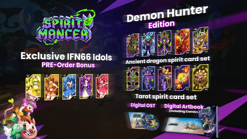 Break enemies' shields using combinations of attacks to capture their spirits into spirit cards, adding them to your deck. Turn any enemy you encounter into your own demon spirit.