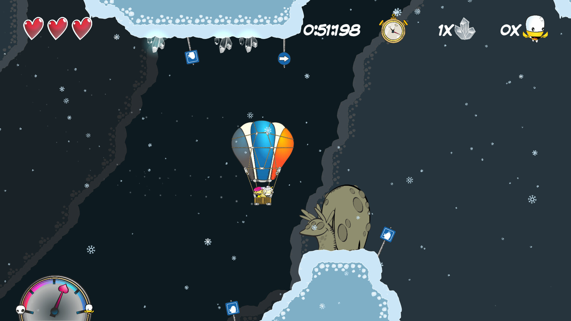 On board the Amber Falcon, you were forced to evacuate your planet and face the dangers of an unknown world after a mysterious crash landing. You will avoid obstacles and traps while collecting "enerbees" - alien fireflies that power up your balloon.