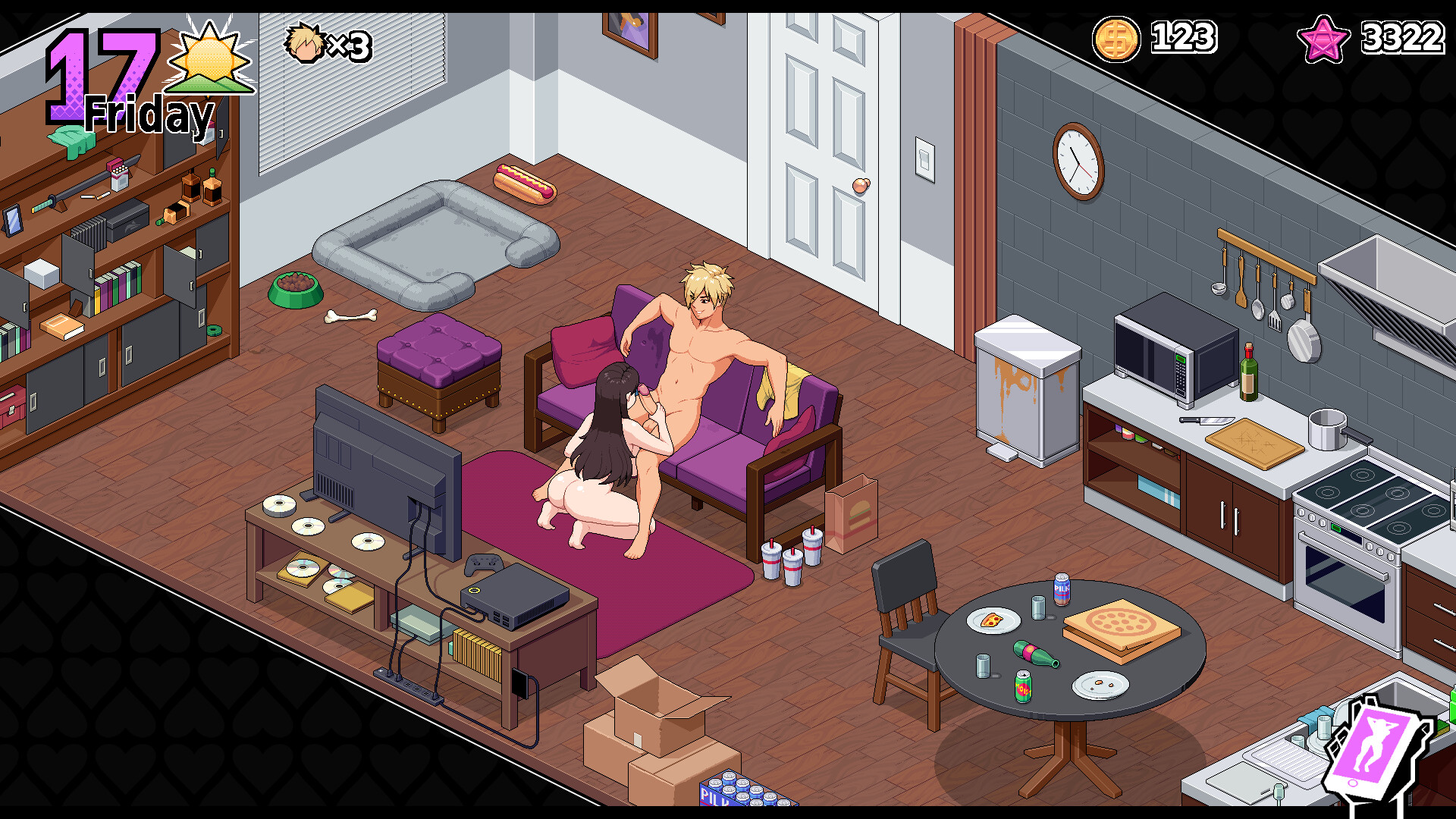 In this brand-new spinoff of the beloved hentai-RPG NTRAHOLIC, you play as Ryunosuke: a lucky scoundrel and professional womanizer. Fortunately for you, your uncle, in his last moments, bequeathed you two apartments that were right next to each other; one for you and the other to rent for a living.
