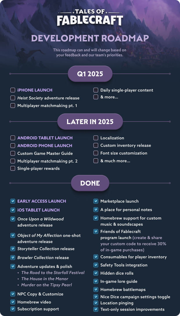 “At Early Access launch, Fablecraft will feature one free-to-play adventure spanning five sessions, multiplayer for five players and one GM, single-player tutorials, and more than 130 unique assets for homebrew campaigns.”