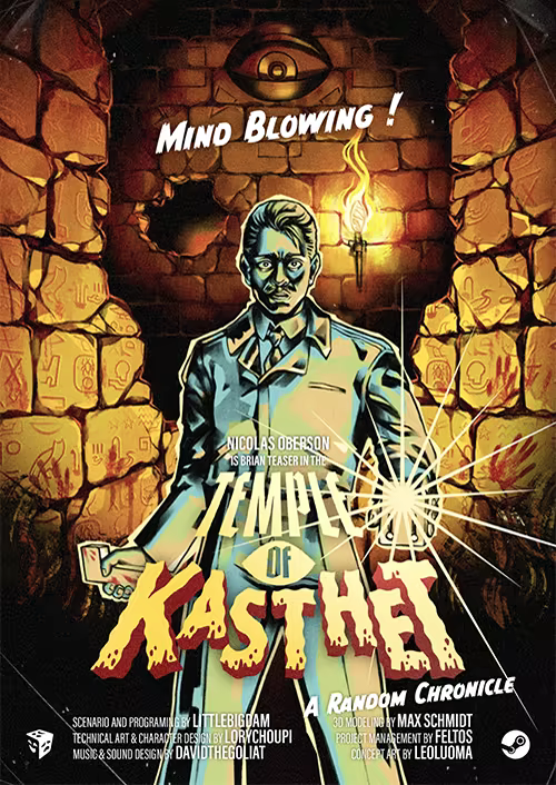 Temple of Kasthet is a first person Puzzle / Escape game with an ambiance straight out of the horror movies from the 1930s, with added humour and sarcasm. You play as the (not) brave (at all) Brian Teaser, in a fantasy interpretation of a haunted egyptian pyramid.