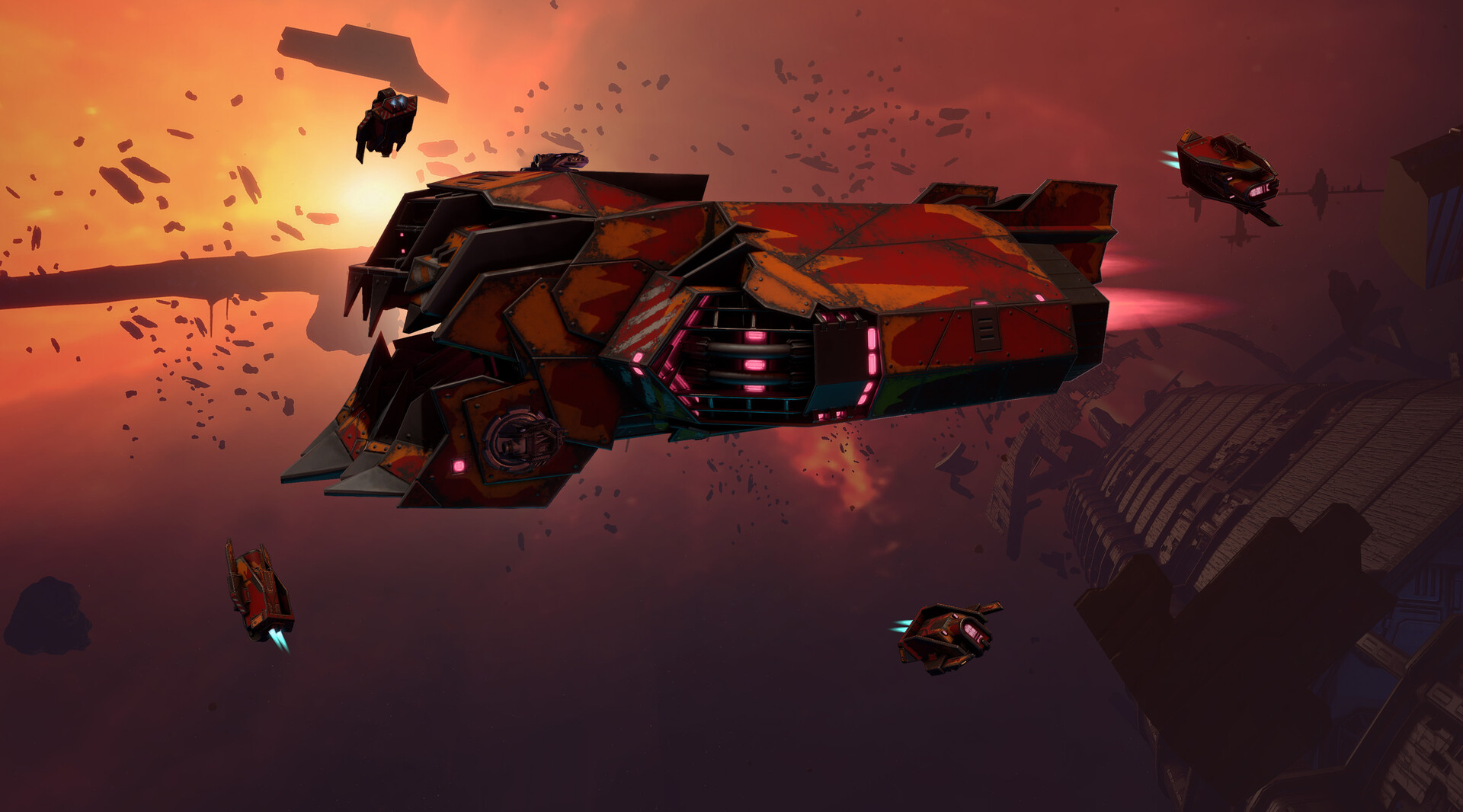 In the past, it was the Imperial mining ship “Digger”. It’s not known for certain who was involved in the modernization and transformation of the frigate. The survivors of the Doomed Flotilla were rumoured to have had a hand in this by trying to escape from the infected sectors. The ship’s old hull was badly damaged, and so it became the carcass on which the new plating from various scrap metals was attached. Somebody thought it would be a good idea to use some of the metal to create a fearsome look for the frigate.