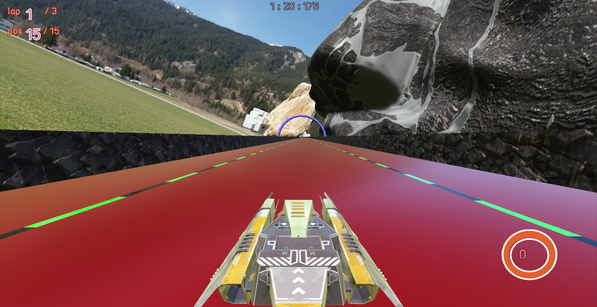 In hyper-sonic mode you race against 14 AI opponents at speeds of 2000 mph on roller coaster like loopy and curvy tracks.