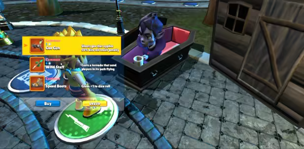 Hex Party takes you to a steampunk universe full of magic and fun items. In addtion to treasure items found in chests, you can grab yourself a personal item from your favorite vampire shop that you can use multiple times using your energy.