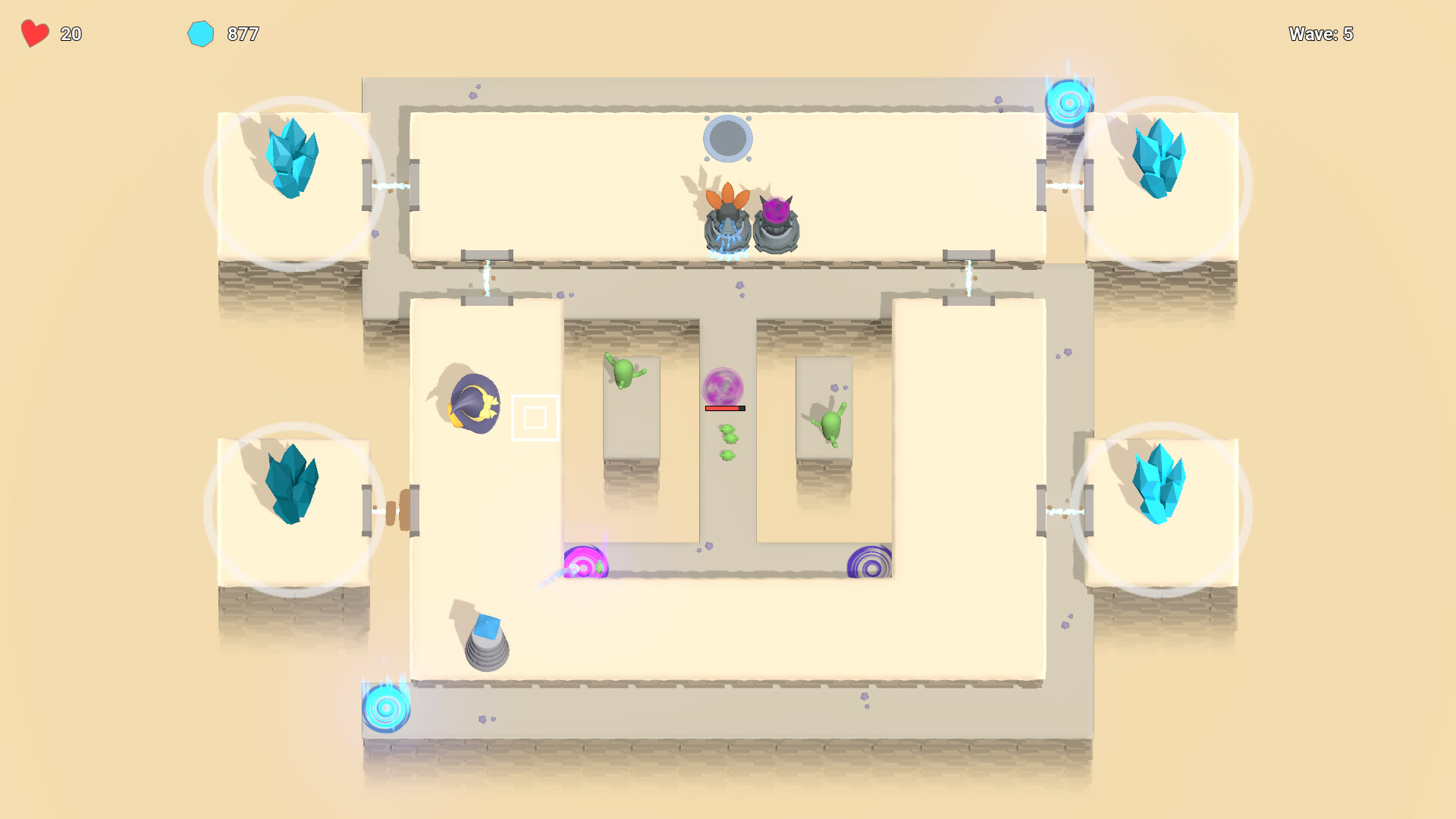 When you've gathered enough crystals, move your tower to the upgrader to upgrade it. Be careful, though, as moving a tower to the upgrader will take it out of the defense until you put it back in position.