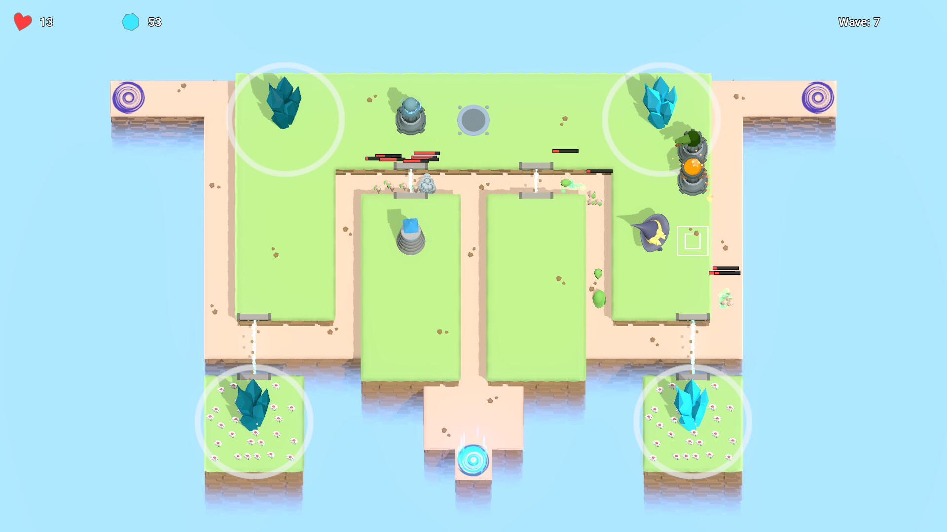 A tower's placement is important, so when enemies move out of range of a tower, move it to a new position!