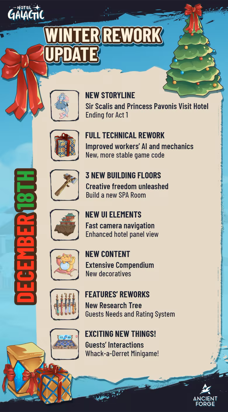 “We're already closely monitoring all the mentions and discussions about Hotel Galactic, be it on our official Discord server, the Steam forums or out there on the web. Your opinions and thoughts on the game are crucial to us, as we want you to have an unforgettable experience with Hotel Galactic.