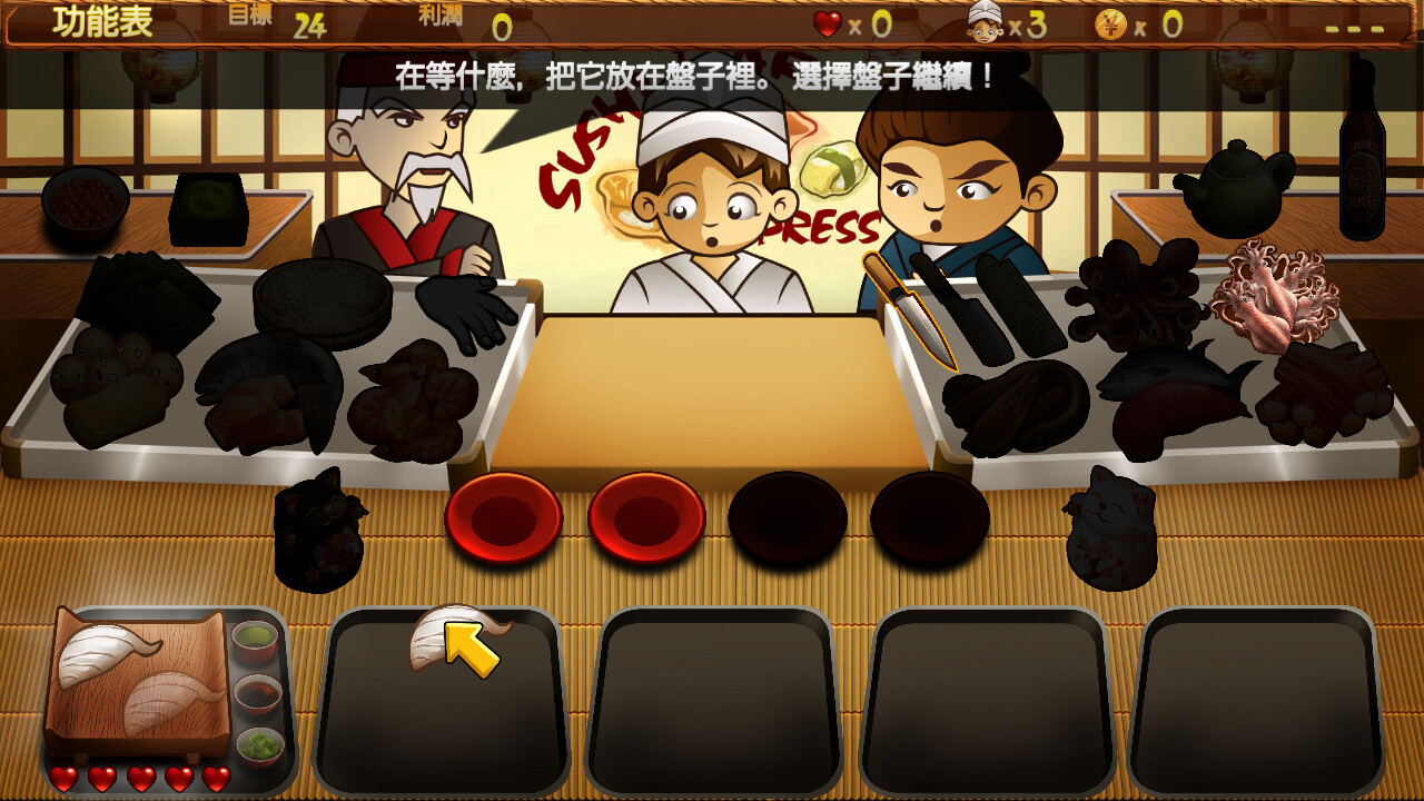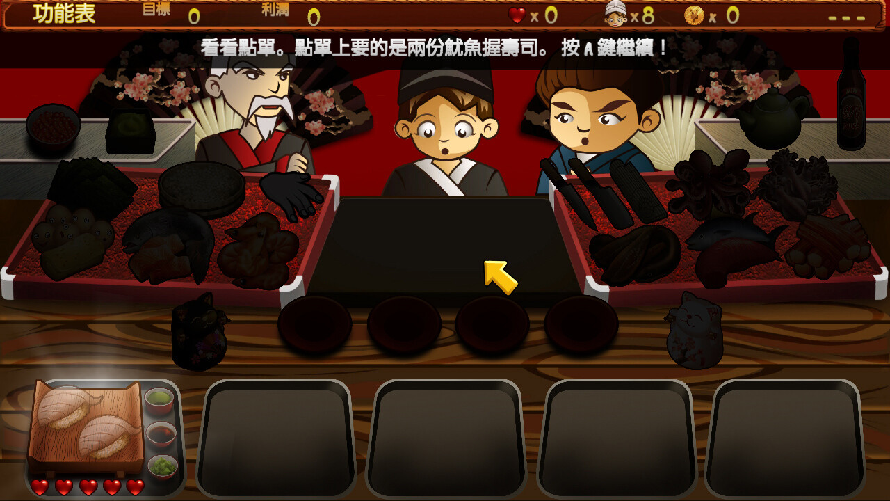 開始壽司師傅的職業生涯,吸收師父的所有智慧教誨。將壽司切片、切丁、捲起並錘打,然後儘快將其提供給顧客。製作生魚片、卷 uramaki、倒清酒,餵飽飢餓的群眾以收集現金。捕捉飛過的金幣,用賺到的錢升級設備和購買更多食譜。