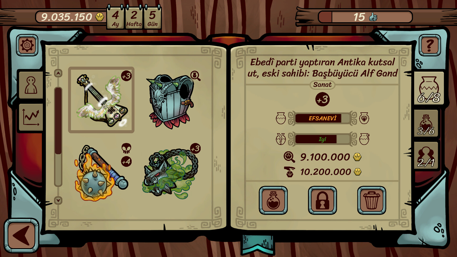 Çalışanların bir diğer avantajı, sizin için sihirli iksir üretebilmeleridir. Görevleri yerine getirerek de elde edebildiğiniz bu iksirler, pazarlık becerilerinizi artırma ya da pazarlık sırasında müşterinin beynini yıkama gibi çeşit çeşit avantaj sağlar. Peki bu iksirler kanunlara uygun mu? Kim bilir. Gelgelelim sizi epeyce güçlendirecekleri kesin!