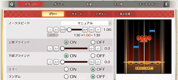 ノーツのデザインを変えるなど、自分の遊びやすい環境を設定することができます