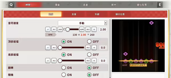 在可以調整音符流速的基礎上,還能修改連擊數的顯示位置、