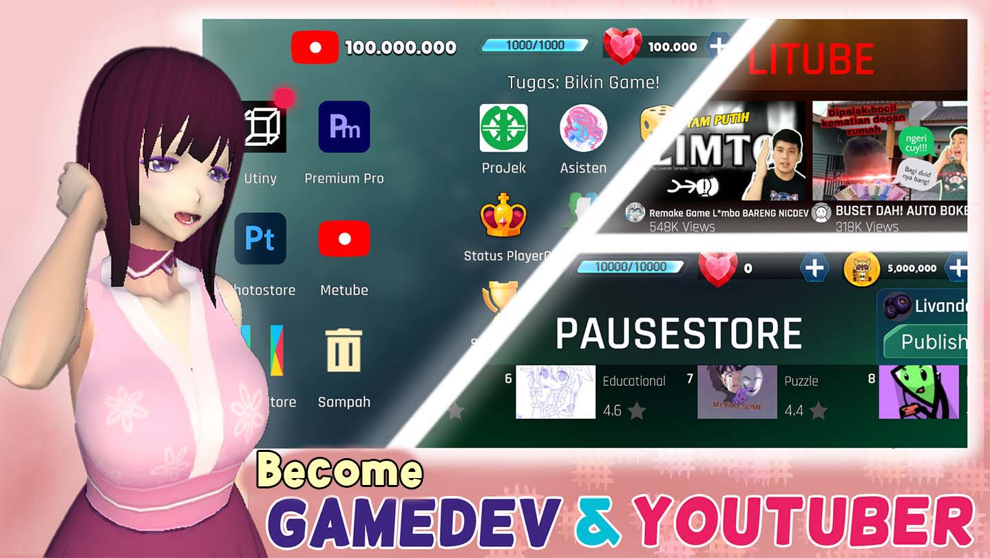 3D Simulation game to become a GameDev as well as a YouTuber with waifus