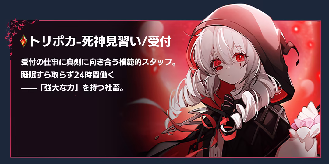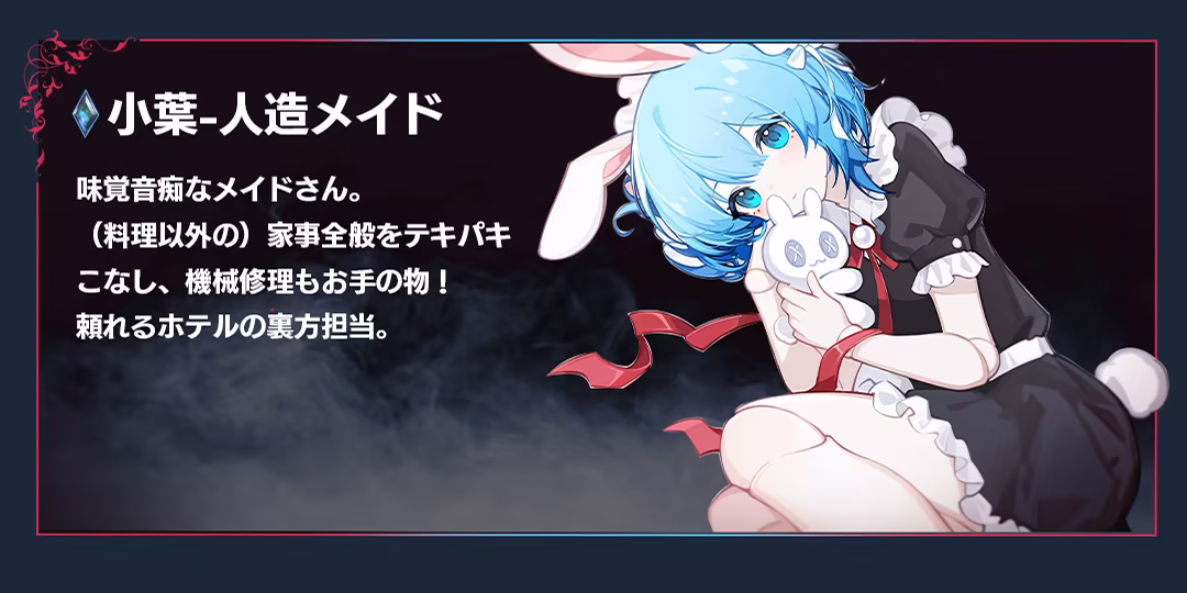 「死神」「ドラゴン」「斬霊師」「人造メイド」——個性豊かでキュートなスタッフたちを雇って、負債を抱えたホテルを経営しよう!採掘や冒険・錬金術・レストラン経営etc……多彩な手段で富を築いて、目指すは借金返済!人外スタッフたちとの恋愛模様が魅力の、ホテル経営シム×恋愛ADV!