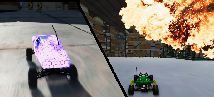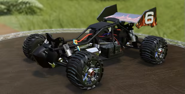 Unlock over 20 RC cars and use their parts to build your own RC car. Vehicle stats are set by selecting a Cassis. Other parts like the body or the antenna are just visual elements.