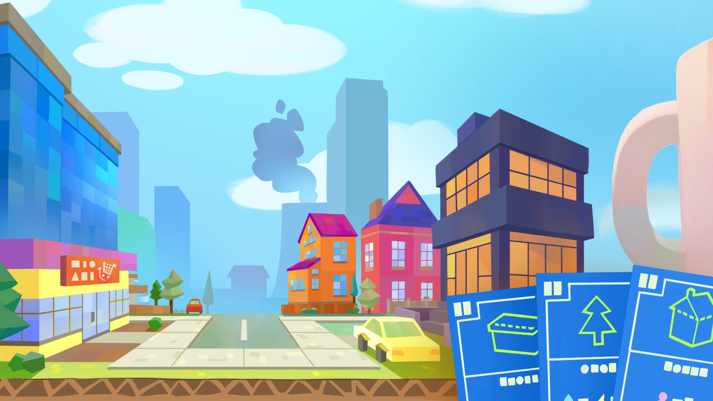 “Build a big city (that fits on a small table) in this cute card-based city builder.”
