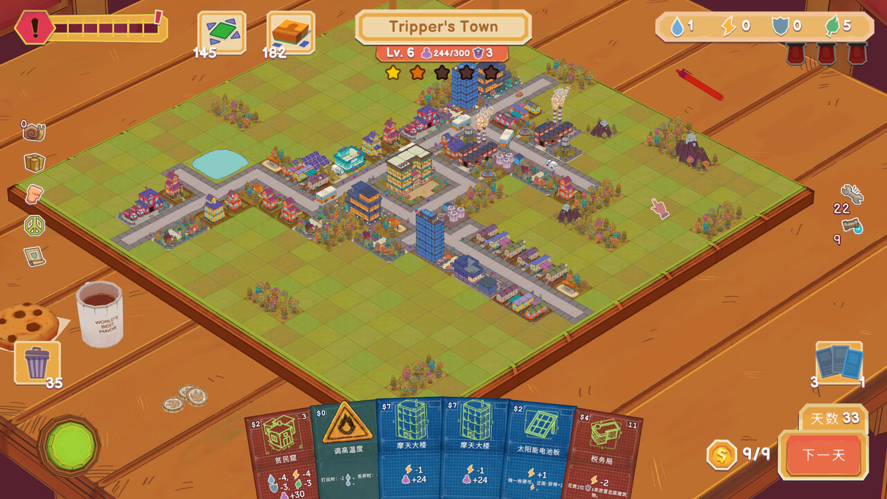 《卡牌城镇》里有丰富的局外成长元素,随着每一局的游玩,你都会解锁新内容,新建筑、新模式、新的随机事件。你的扩建经验会帮助你更好的管理建筑物、但也会有更多的随机事件等着你。