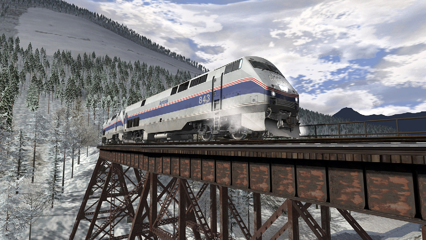 the Superliners in this Add-On wears Phase IV liveries, and include Sleeper, Deluxe Sleeper, Transition Sleeper, Coach, Diner, Lounge. Four career scenarios re-creating a journey of the legendary Amtrak Empire Builder on the popular Stevens Pass route through the Cascade Mountains (route available separately) will give you the opportunity to take the throttle of the P40DC for truly memorable railroading!