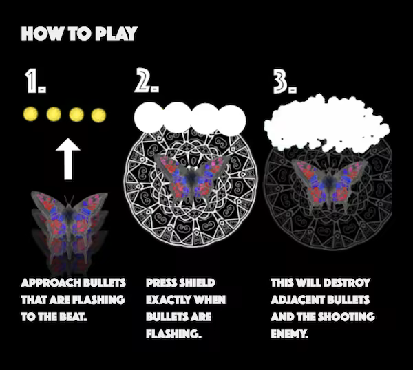 Reflect bullets to the beat in this psychedelic rhythm bullet hell shoot 'em up. Patterns of rhythm and bullets are melted into a unprecedented gameplay experience. Feel this immersive audivisual experience filling your soul with excitement and joy.
