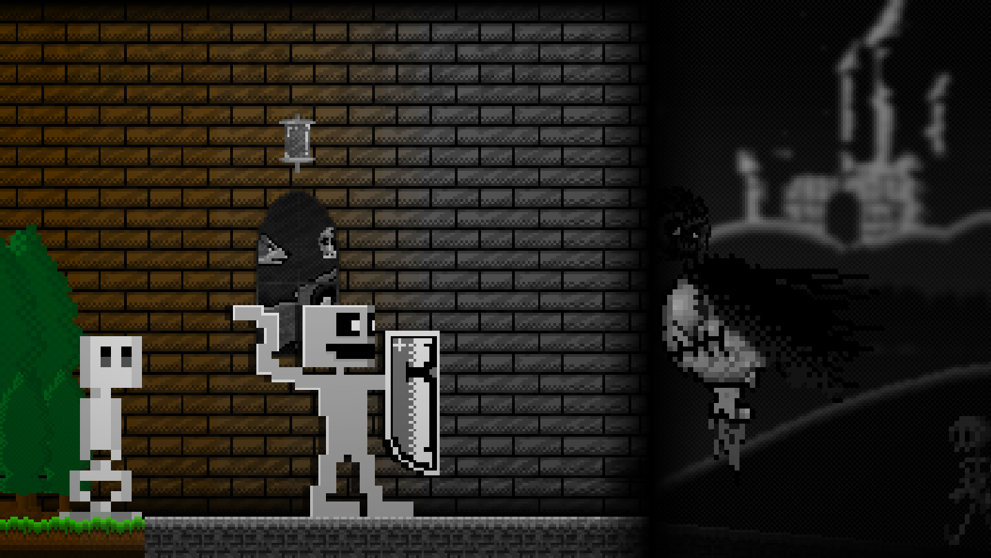 As you come home from a long journey to see your son once more, you discover he is gone. A castle has been presumably summoned from thin air and it has a dark, gloomy presence to it. With this castle appearing, all the colours also disappeared, leaving everything looking lifeless. You hear a woman's voice in your head, beckoning you toward the castle. After grabbing your ancient shield and trusty boomerang you go towards an adventure that you simply don't know how will end. All you know is that you are going to save your son, no matter what it takes.