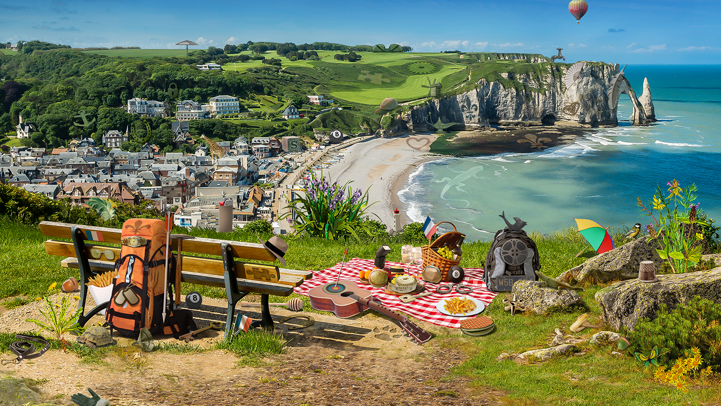 Hit a new level at every location and play 8 minigames as you go along. All you’ve got to do is find stuff—match silhouettes, solve riddles, and spot objects. Make sure to collect all the fleur de lis and flags you see—there are 60 each—to unlock an Unlimited Mode and bonus minigames. Sounds fun? Go on, then. Start your French Vacation!