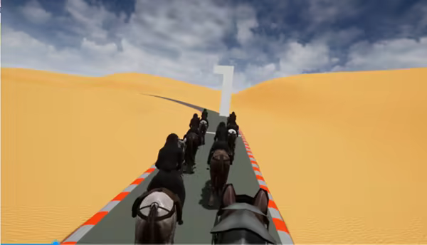 This is a casual game. In this mysterious VR game, you will play a brave knight, a vast desert road, and a thrilling horse ride competition with a number of nuns. The game adopts the first perspective mode. Players can feel the speed of the horse's running and the beauty of the scenery, making you seem to be in a real equestrian competition.
