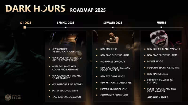 Dark Hours is a co-op survival horror game for up to 4 players. Your heist has been disrupted by a supernatural event, and your team of robbers is now trapped with an evil entity. Forget your plan, your mission is to survive. Explore and cooperate to find a way out or hide and wish for daylight.