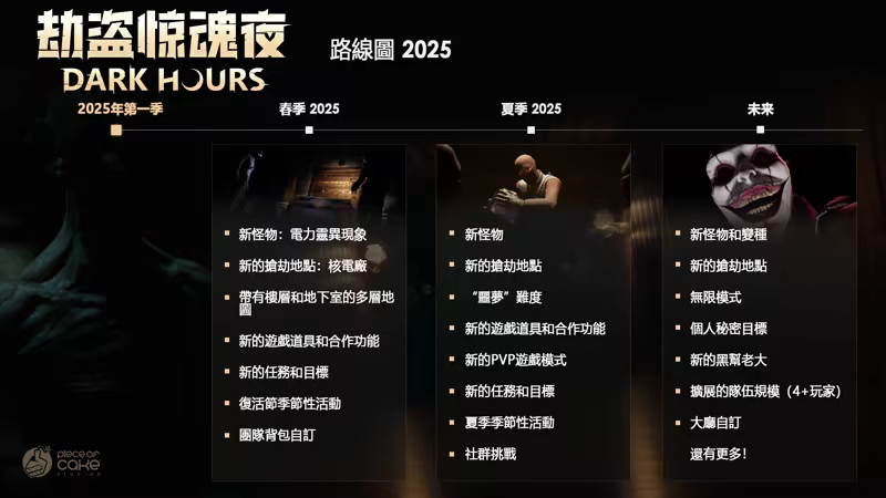 《Dark Hours》是一款 1-4 人合作求生的恐怖遊戲。玩家扮演的竊賊犯案時被超自然力量盯上,一行人被迫與邪惡靈體困在一起。別管計畫了,求生才是首要任務。四處探索,合作尋找出路,或是躲起來等待天亮吧。