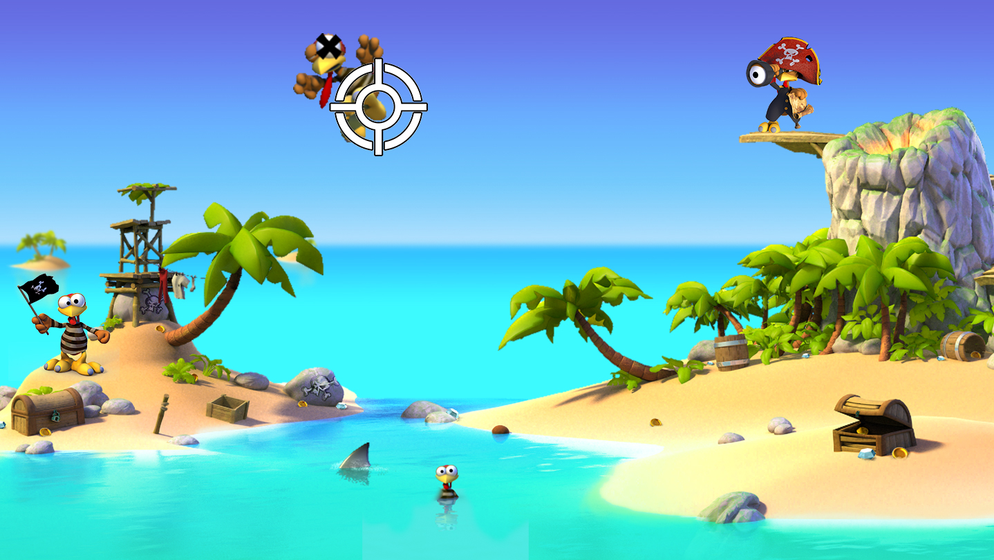 An idyllic Caribbean archipelago is infested with Moorhuhn pirates. It is up to you to restore peace to these shores!