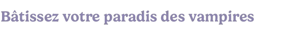Créez votre paradis des vampires, un sanctuaire qui reflétera vos affinités gothiques. Sélectionnez le cercueil idéal et fabriquez d’étranges décorations pour apporter une touche macabre à votre intérieur. Vous pourrez aussi agrandir votre domaine et améliorer votre maison, les possibilités sont infinies.