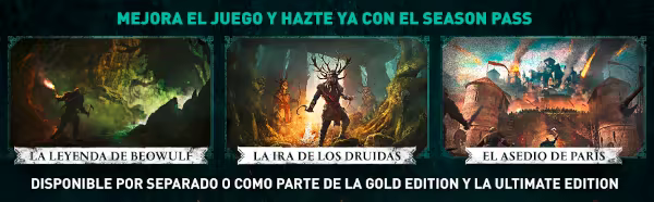 - La expansión "El asedio de París", donde revivirás la batalla más ambiciosa de la historia vikinga. Infíltrate en la fortificada urbe parisina, descubre los secretos del enemigo y forma alianzas estratégicas para proteger el futuro de tu clan.