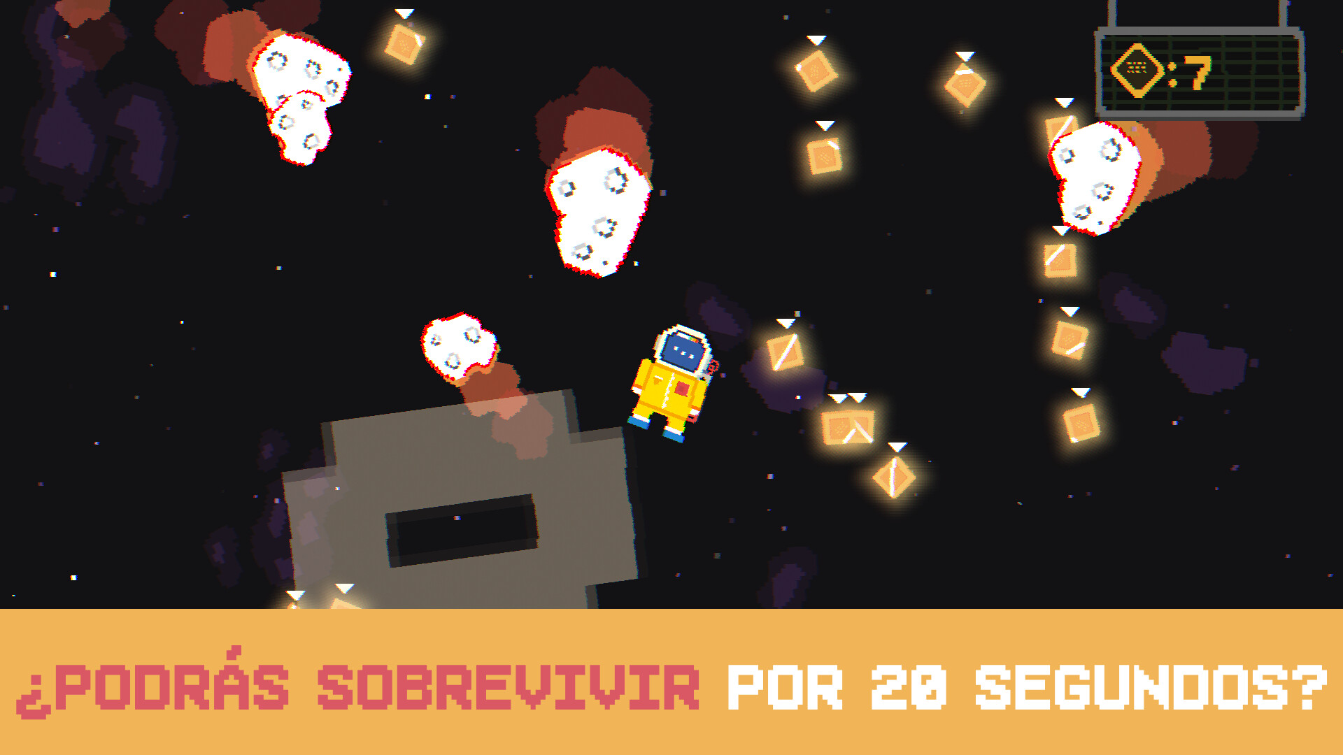 Un Bullet Hell brutal arcade donde solo tienes 20 SEGUNDOS para ganar. Esquiva vacas, tentáculos y asteroides mientras recolectas Space Tokens en medio del caos total. ¿Listo para completar la misión espacial más intensa de todas?