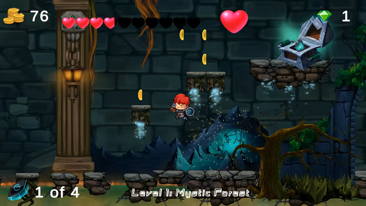 Like a knight in shining armor, help Red fight with monsters and free the Protectors of the Forest. Collect and upgrade weapons, coins and gems, find your way to the exit portal to  back home.