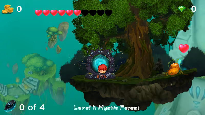 Help Red explore different beautiful worlds as they try to find his way back home. Play through a gorgeous level of eye-catching and tranquil handmade art. Battle with different monsters, collect coins and gems, find the hidden runes, and unlock the exit portal to go back to your world!