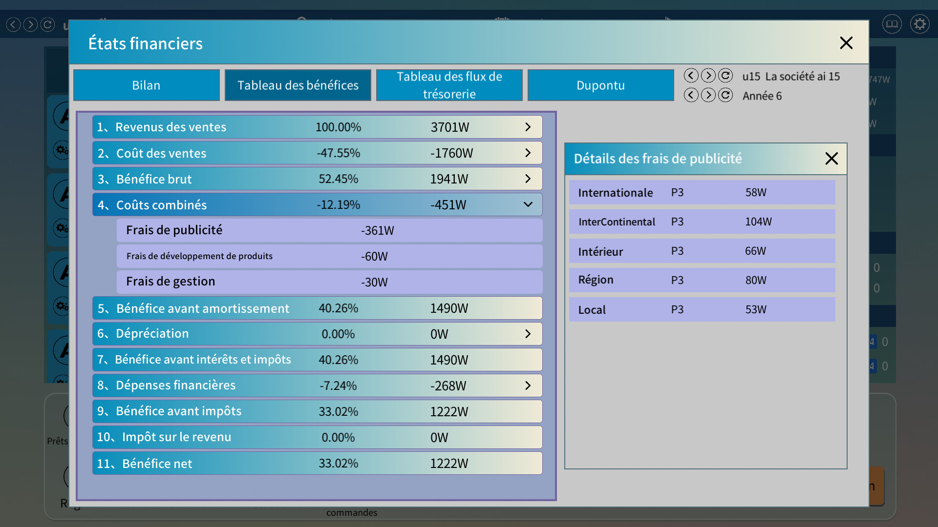 Il y a ai dans le jeu pour rivaliser avec vous sur le marché.Avec 11 niveaux de difficulté, à mesure que la difficulté augmente, le marché sera de plus en plus concurrentiel, la capacité budgétaire de l'IA deviendra de plus en plus forte, la capacité budgétaire de l'IA de la dernière difficulté deviendra très forte et vos capacités augmenteront lentement dans le processus de concurrence avec l'IA.