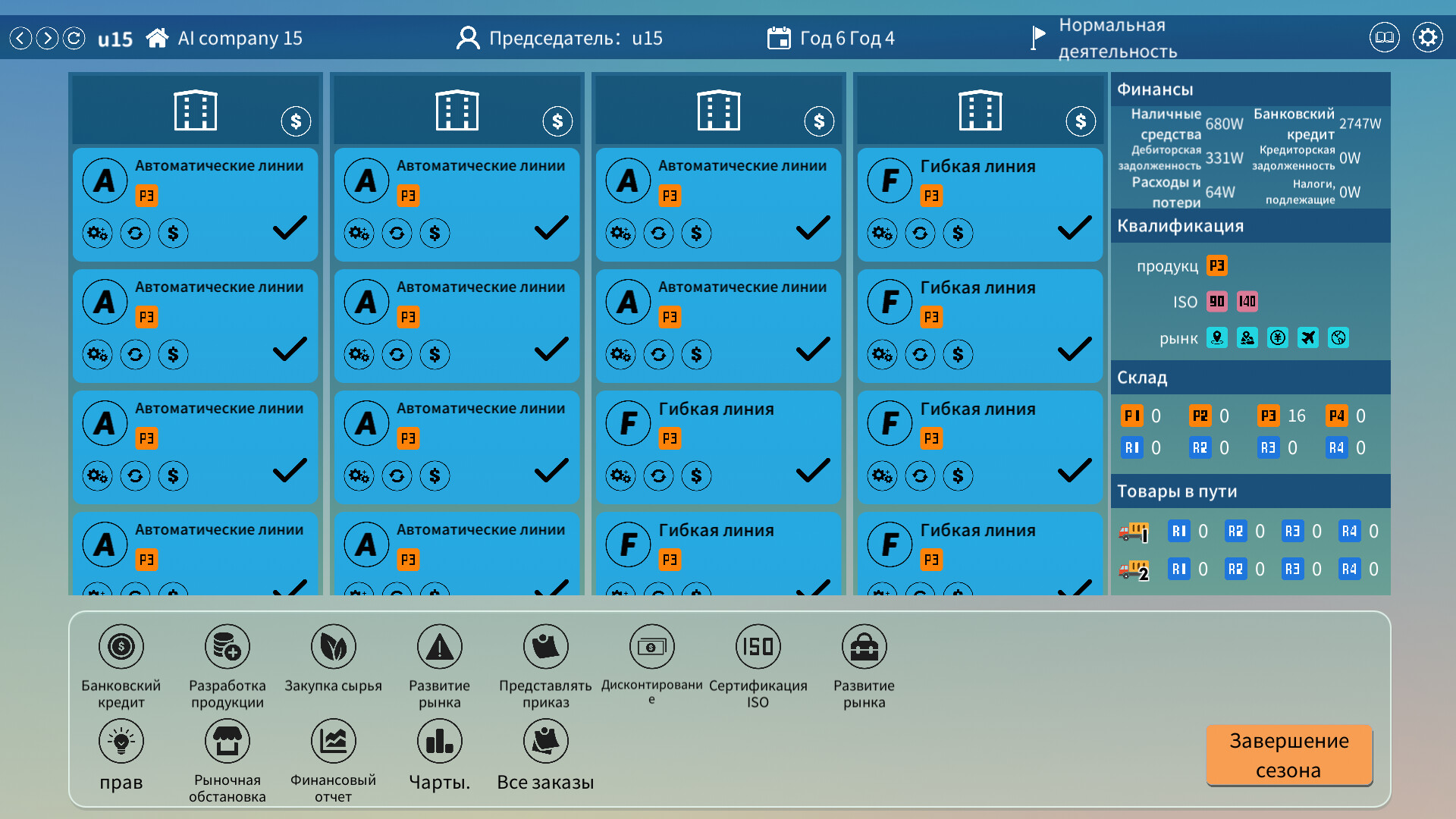 Игра всегда строится вокруг двух целей: производство продукции, продажа продукции.