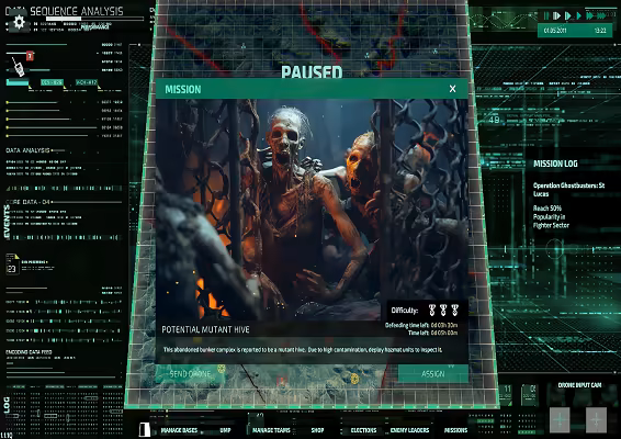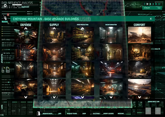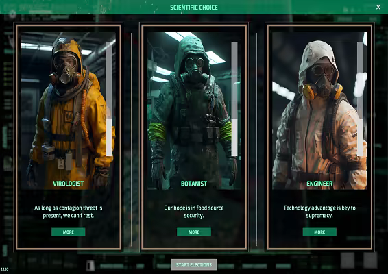 Make scientific direction choices that will help the civilian population and your troops survive in the hostile world.